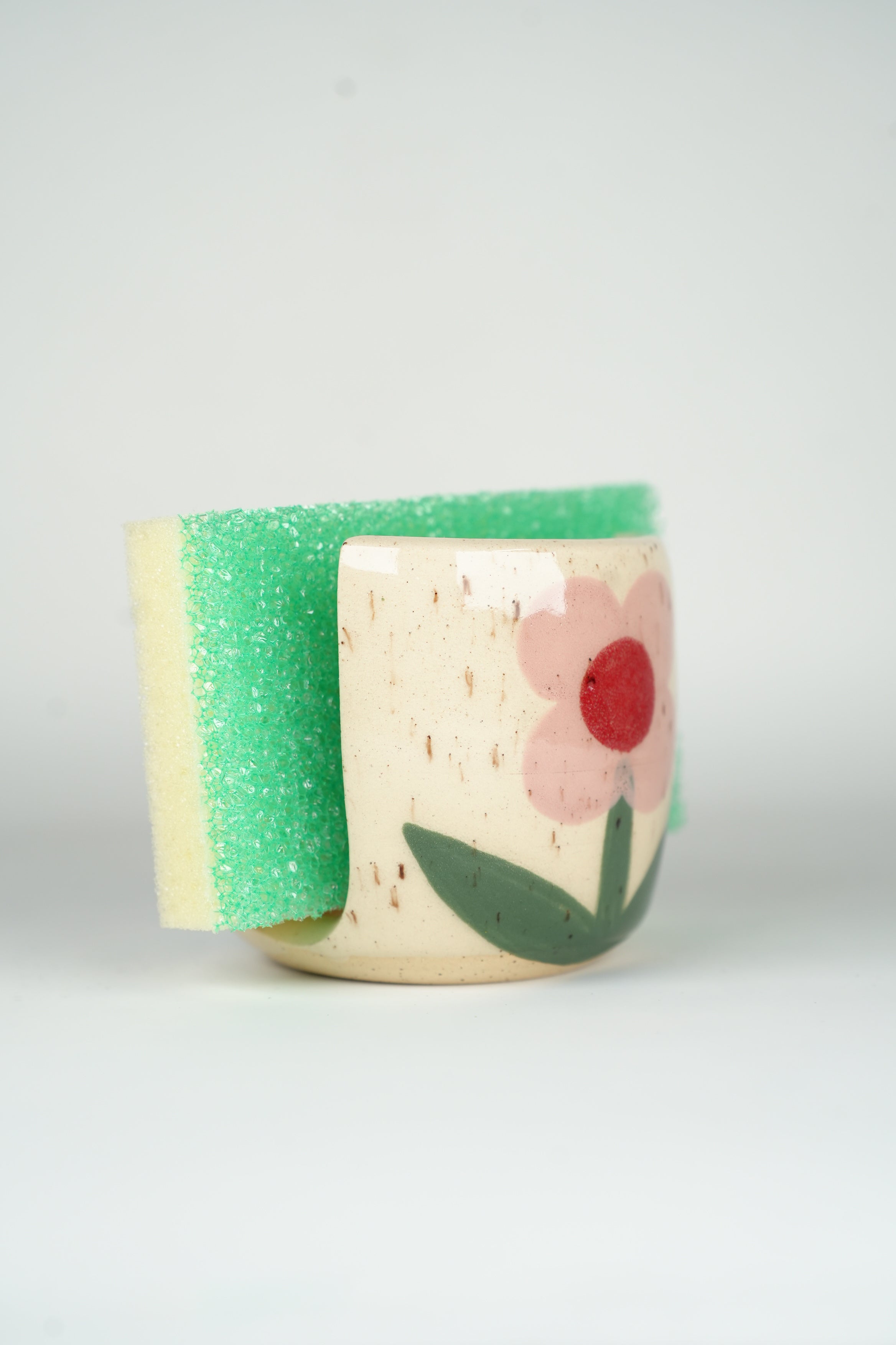 The perfect place to put your sponge. These little stoneware sponge holders are approximately 2" wide and 3" tall.