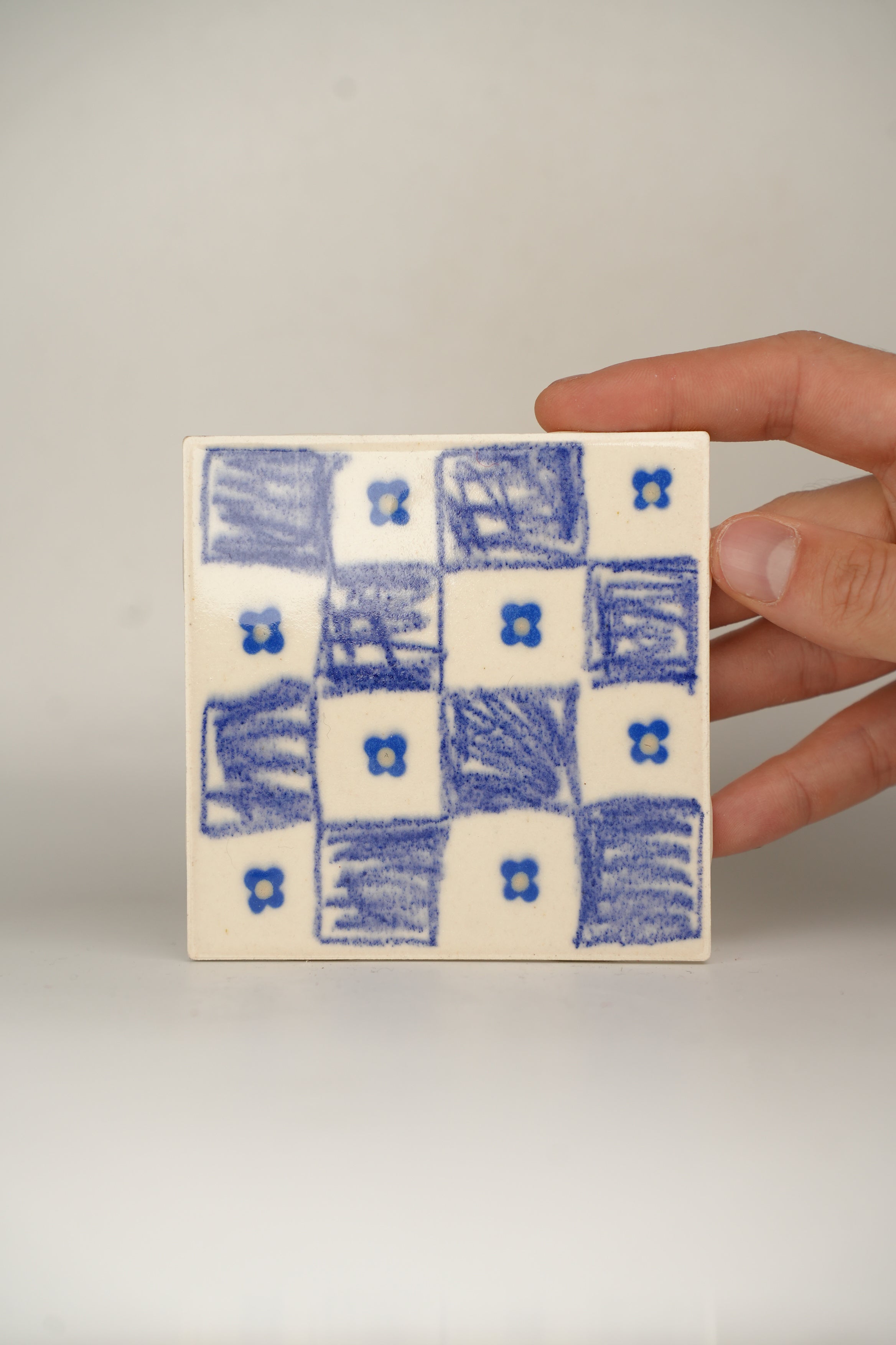 Blue Flower Checkers Tile