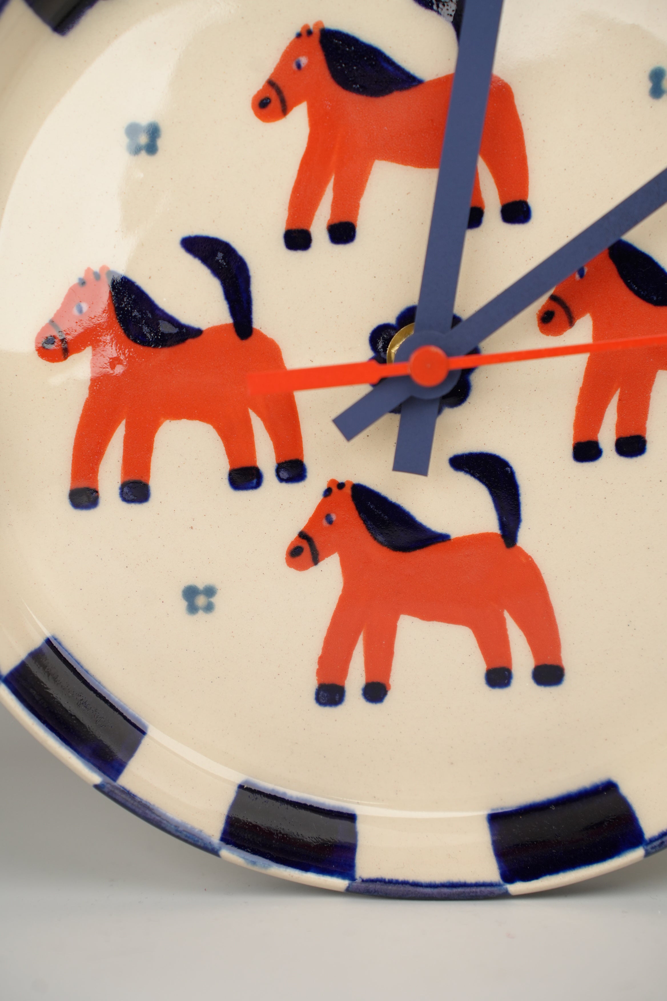 Tick tock, a ceramic clock! (They motors are silent, so there isn't actually any tick tocking.) A step on our mission to make the mundane beautiful. A true embodiment of our belief that art can be functional, these clocks are great for telling time and even better for looking beautiful on your wall. Painstakingly crafted one by one, each of these clocks takes days, sometimes weeks to complete. Made and painted by hand in our Toronto studio.