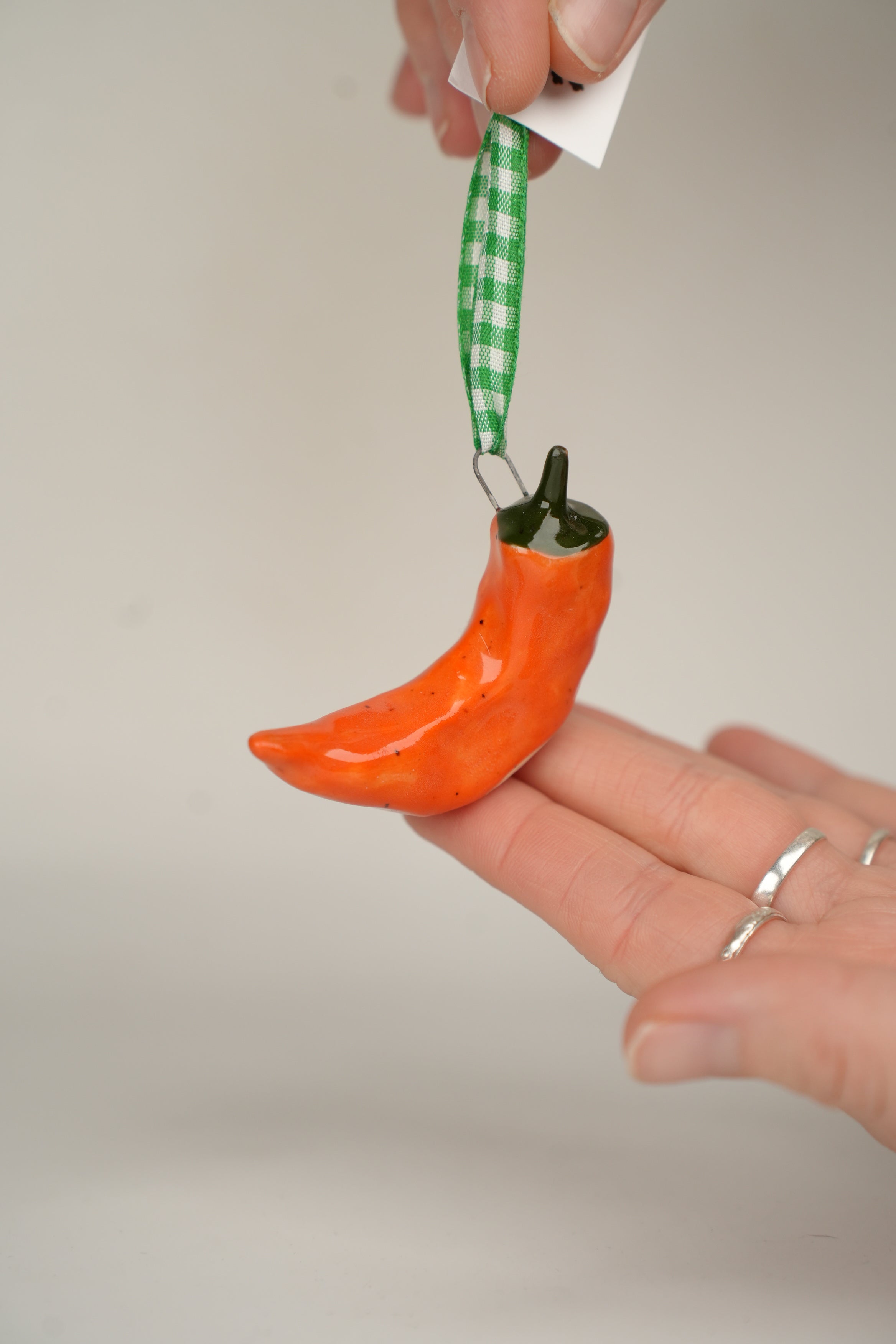 A little stoneware chili ornament! Great for a tree or a shelf or wherever makes you happy :) Handmade and painted in our Toronto studio.