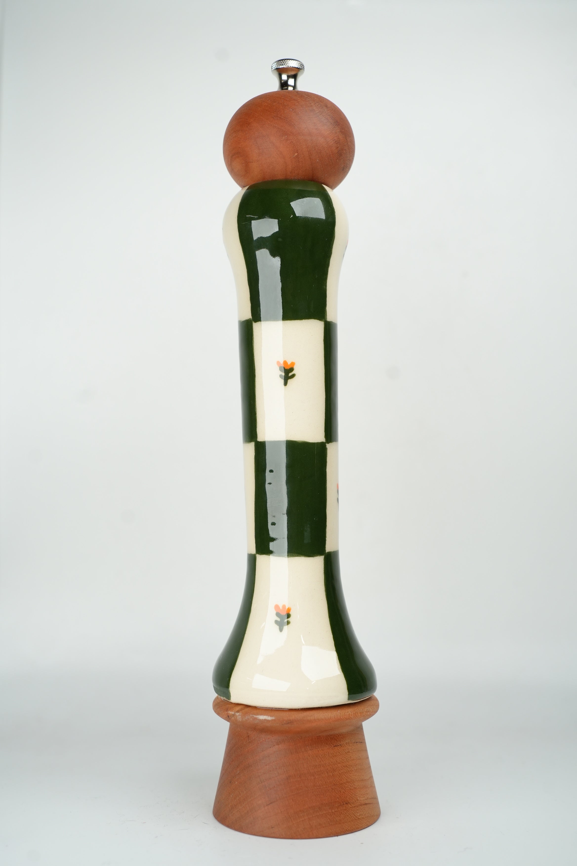 Dark Green Checkers 12" Pepper Mill (Maple)