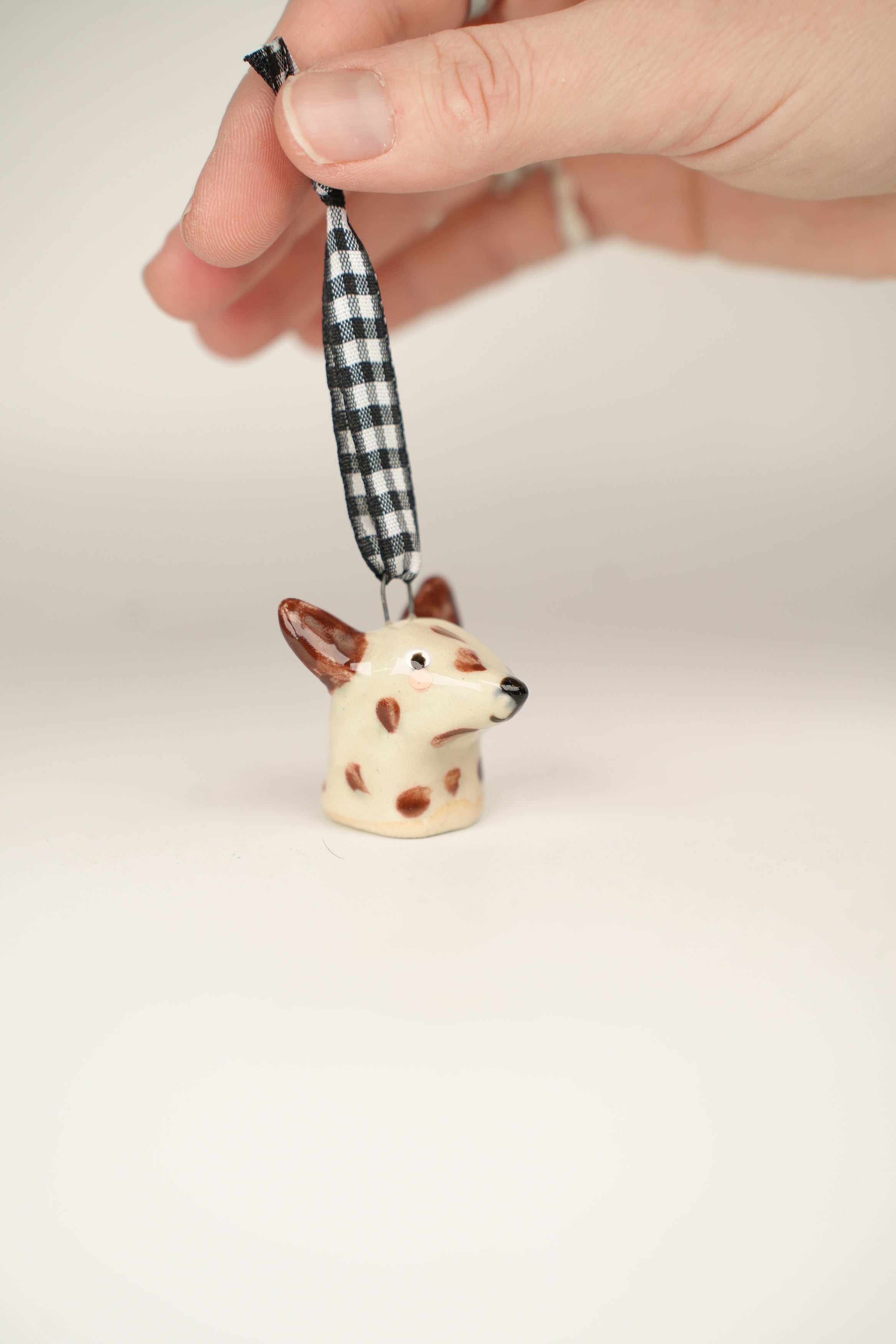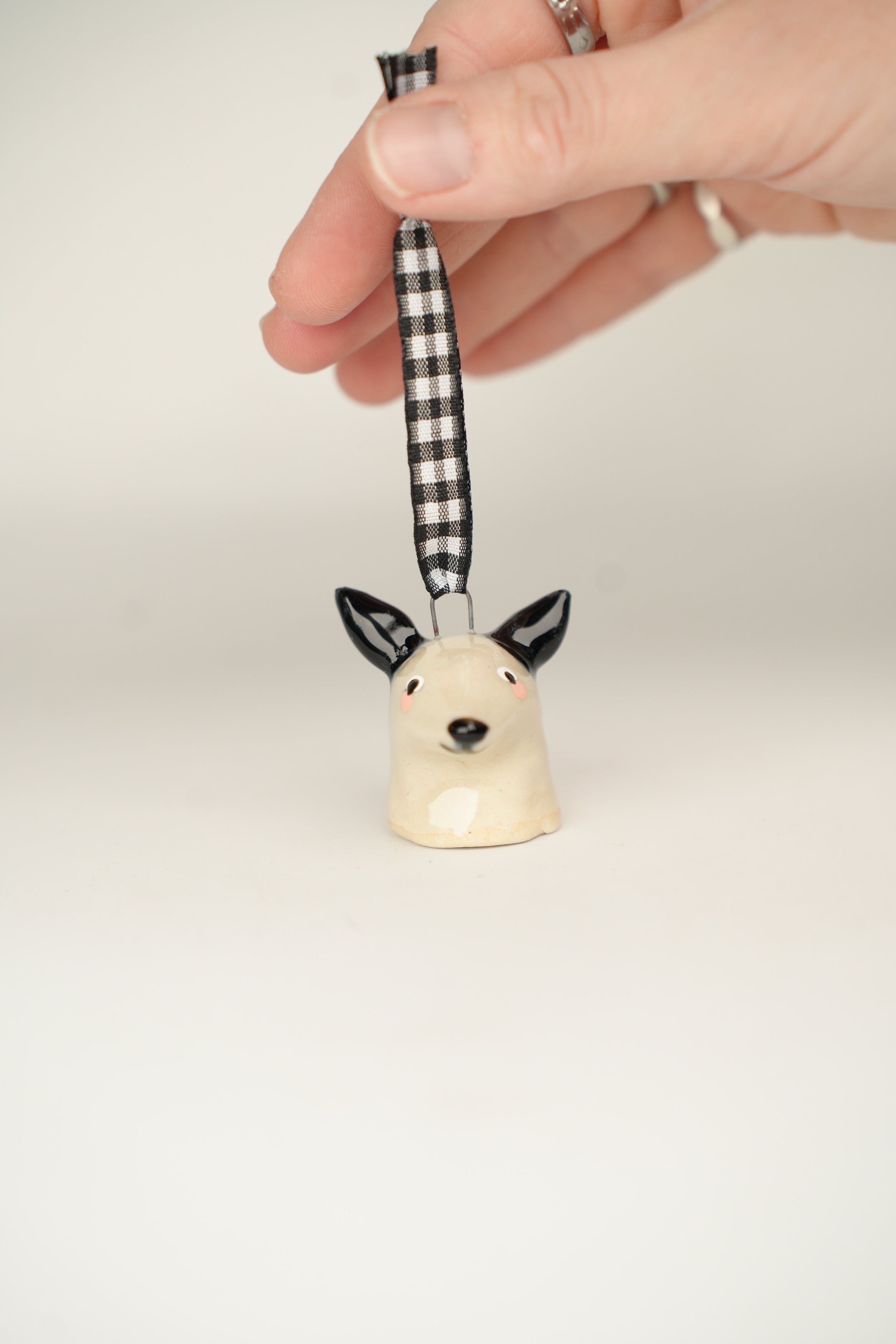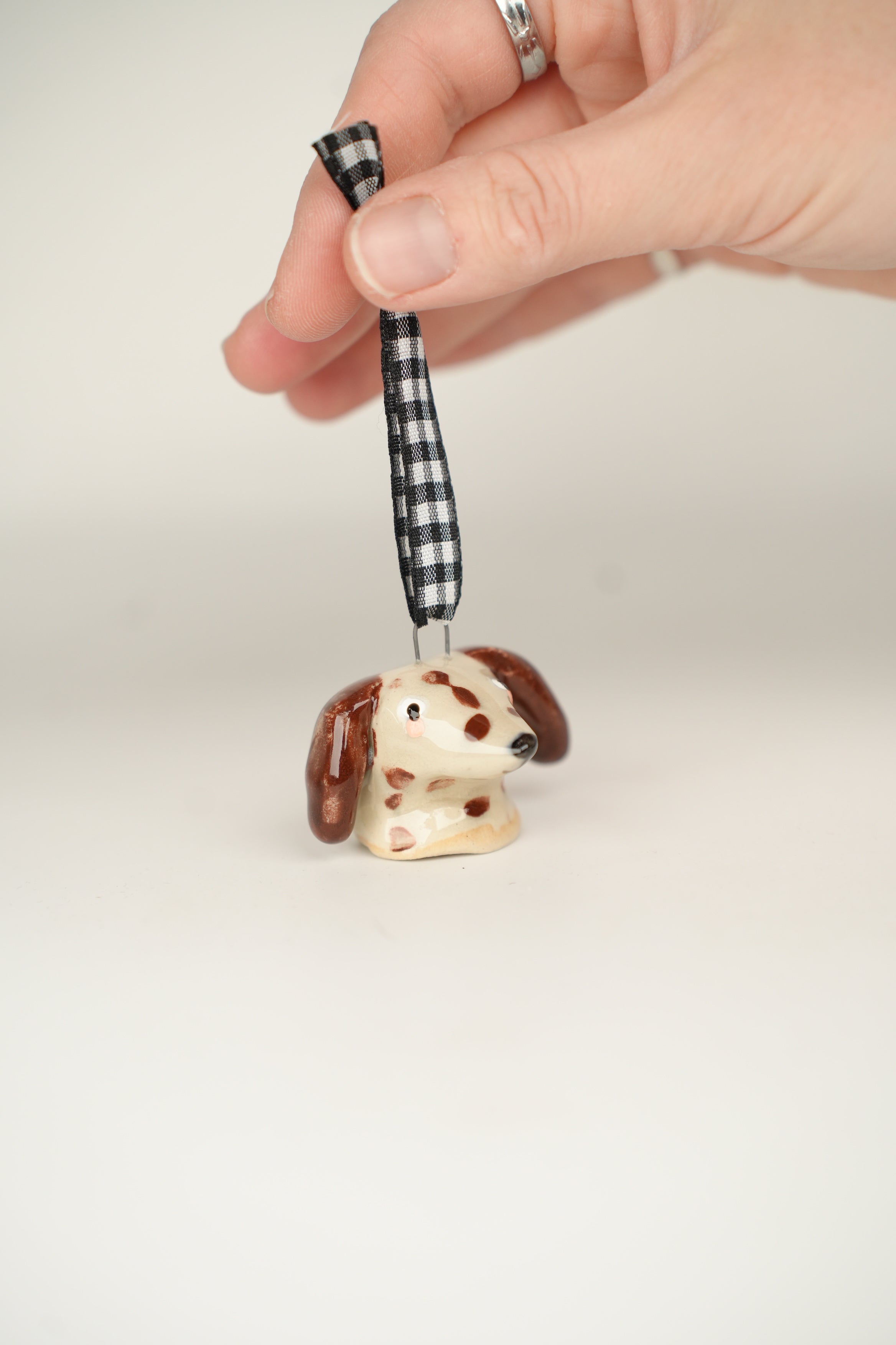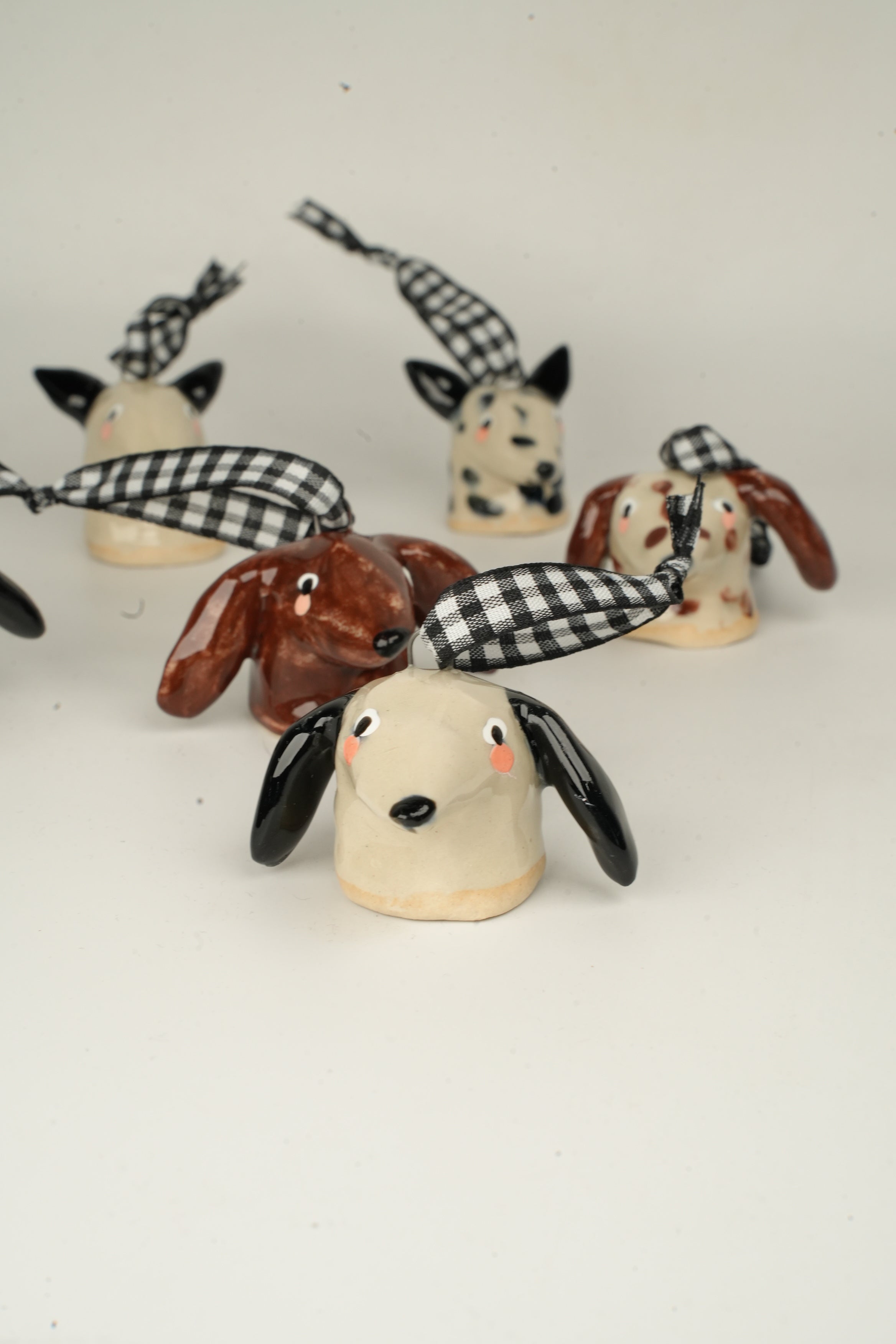 A little stoneware dog ornament! Great for a tree or a shelf or wherever makes you happy :) Handmade and painted in our Toronto studio.