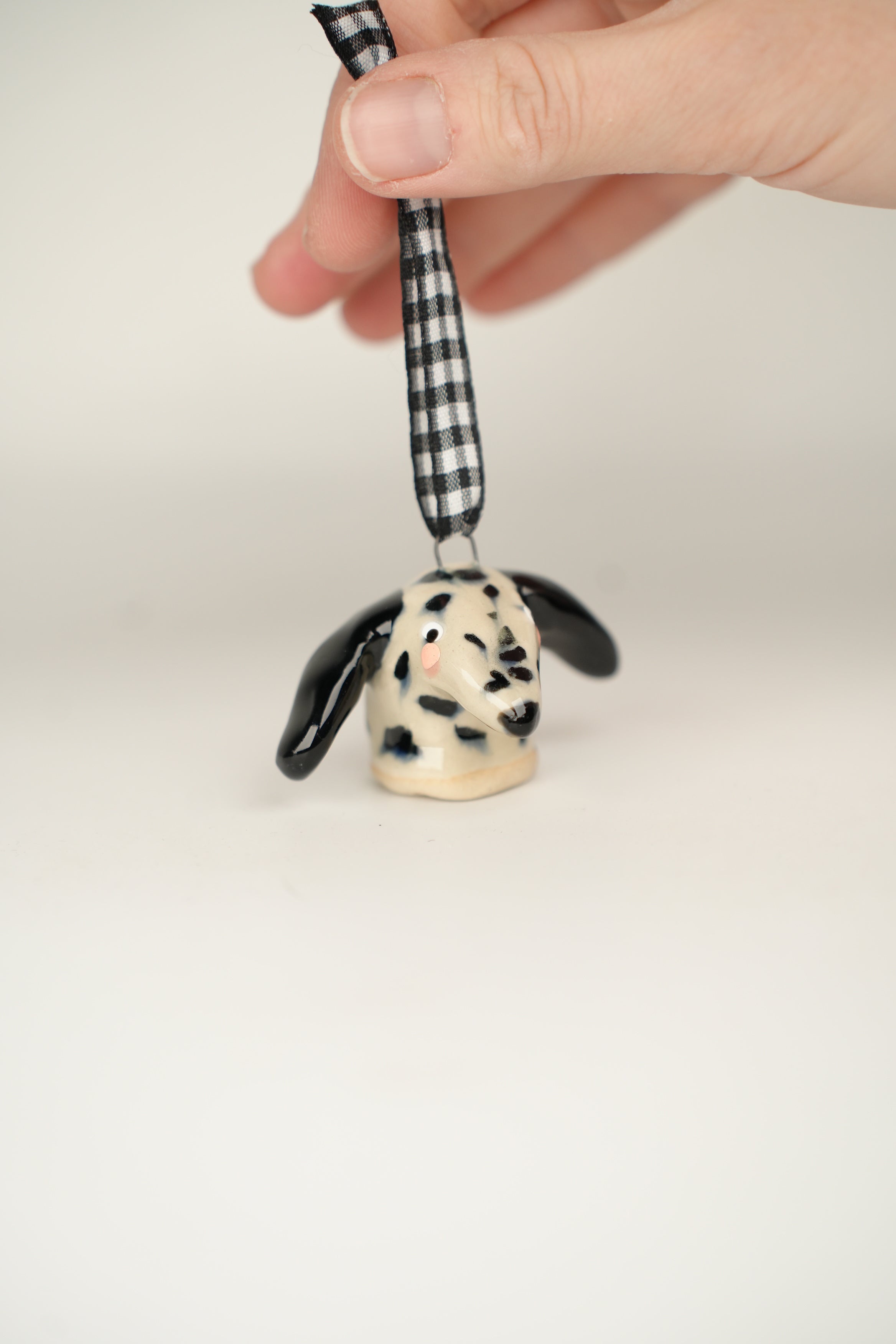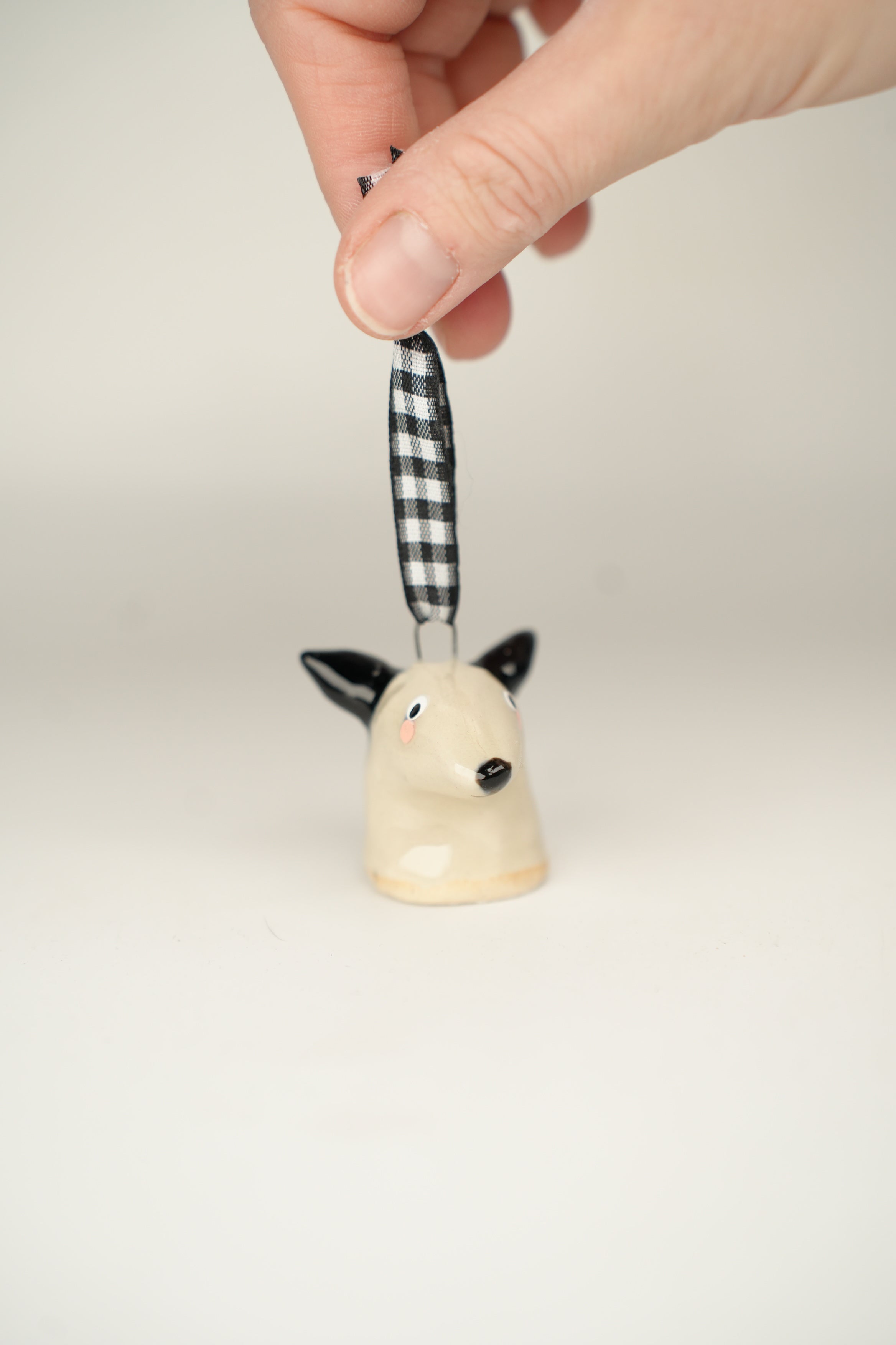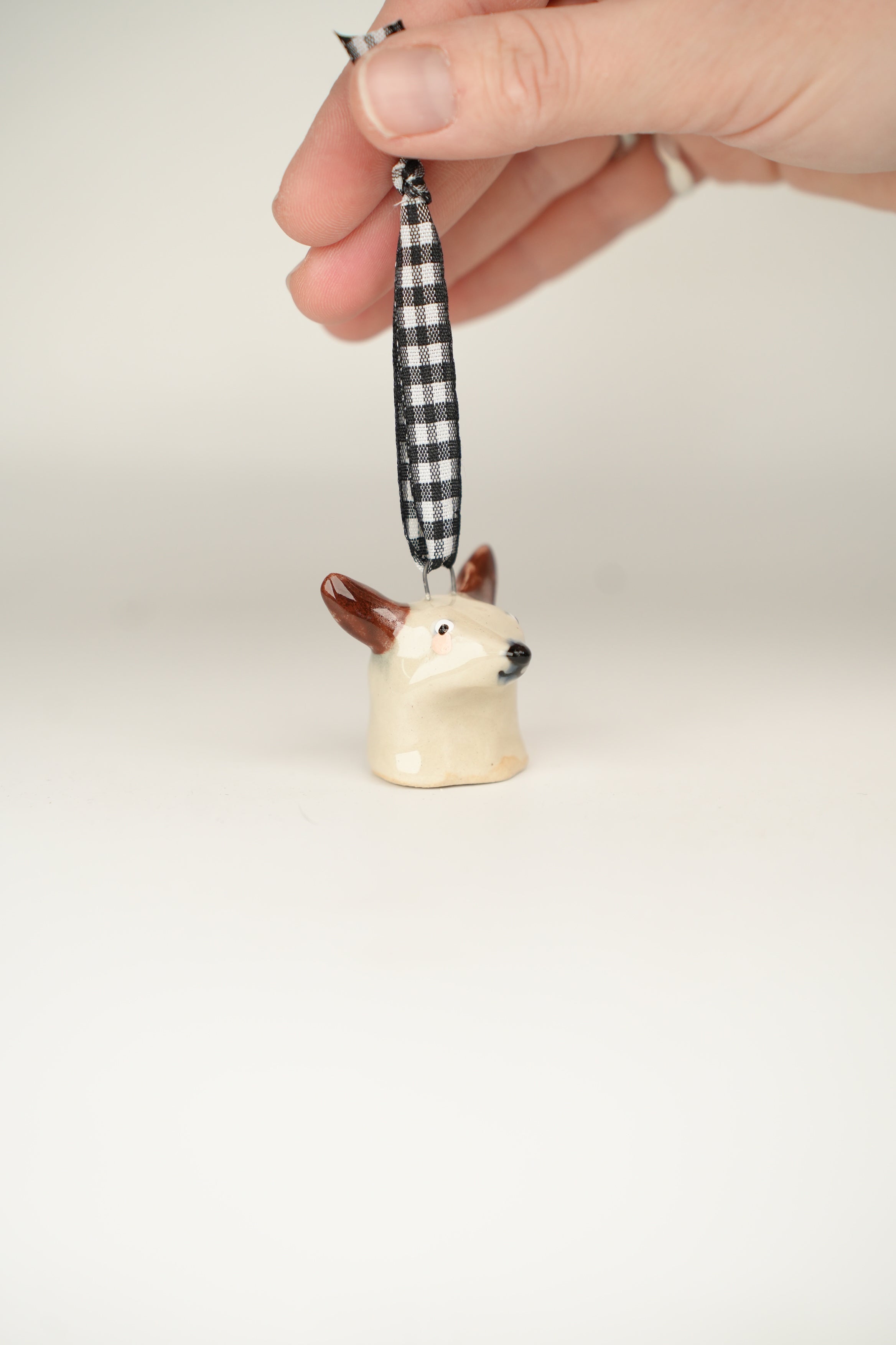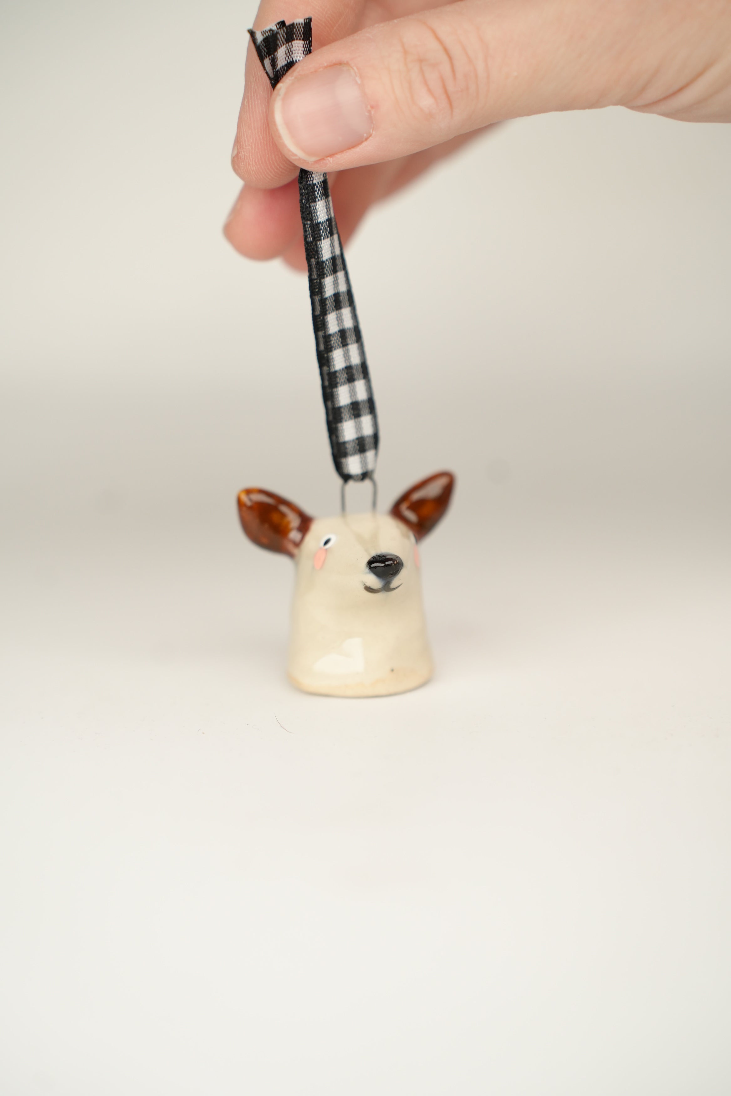 A little stoneware dog ornament! Great for a tree or a shelf or wherever makes you happy :) Handmade and painted in our Toronto studio.