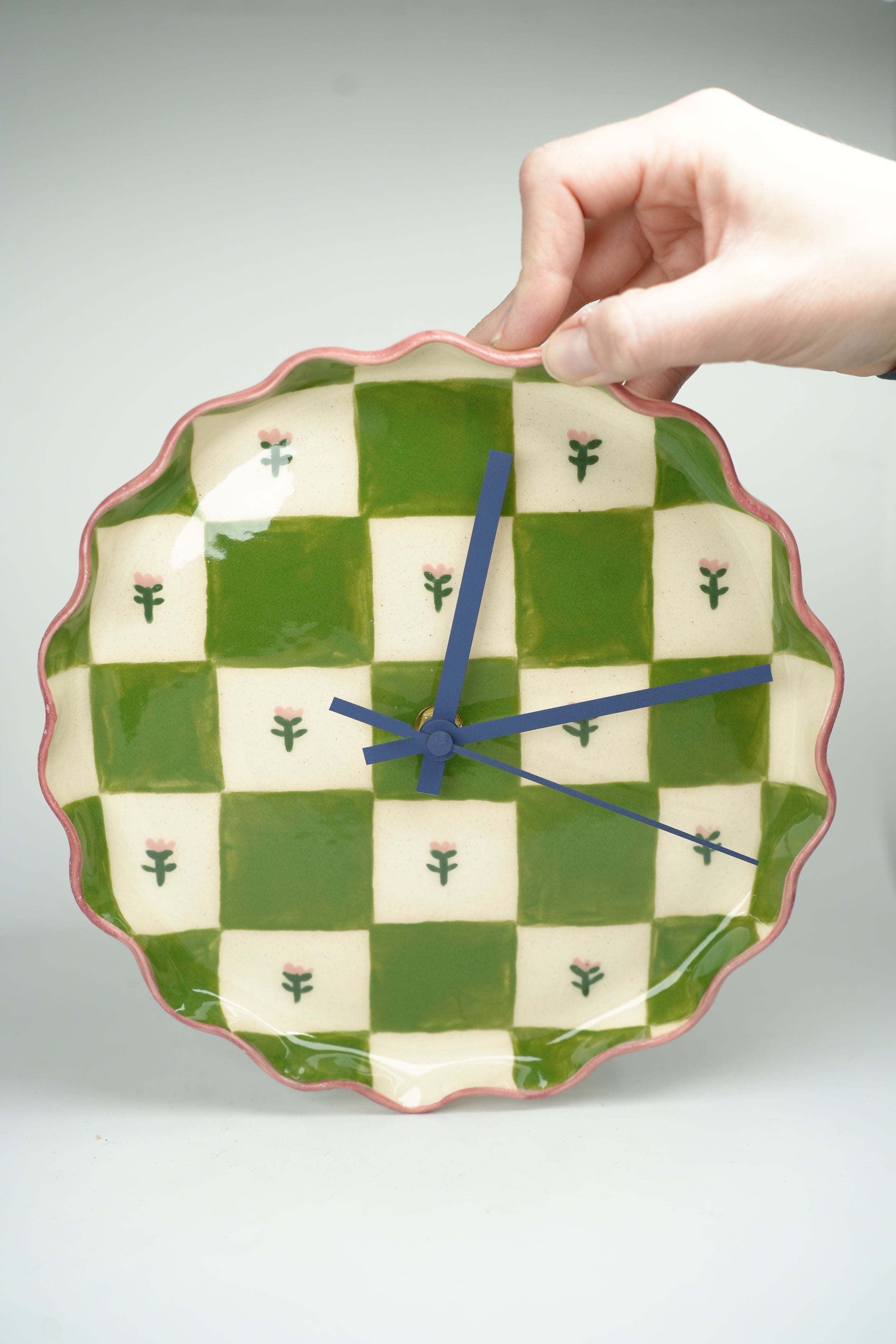 Tick tock, a ceramic clock! (The motors are silent, so there isn't actually any tick tocking.) A step on our mission to make the mundane beautiful. A true embodiment of our belief that art can be functional, these clocks are great for telling time and even better for looking beautiful on your wall. Painstakingly crafted one by one, each of these clocks takes days, sometimes weeks to complete. Made and painted by hand in our Toronto studio.