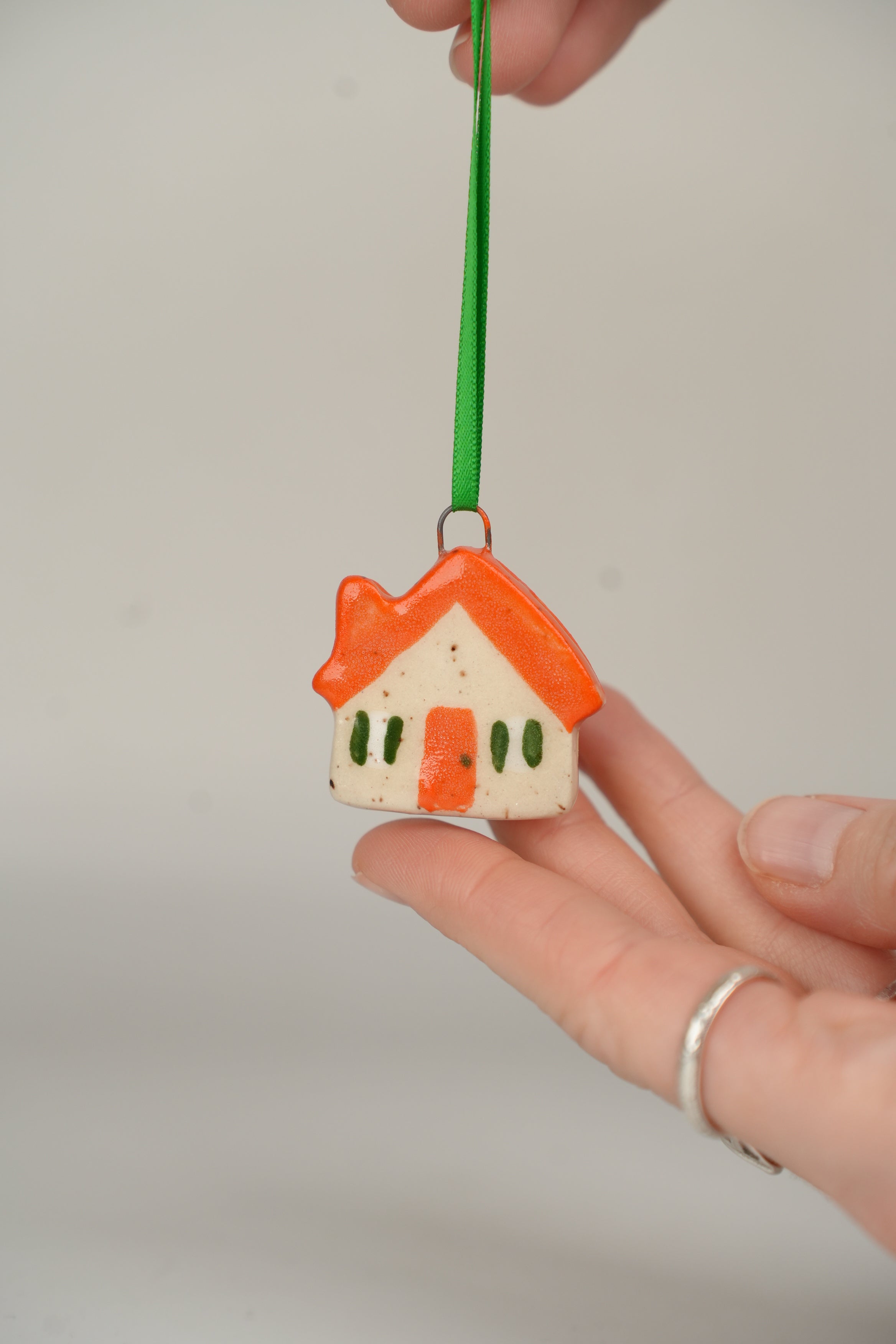 A little stoneware house ornament! Great for a tree or a shelf or wherever makes you happy :) Handmade and painted in our Toronto studio.