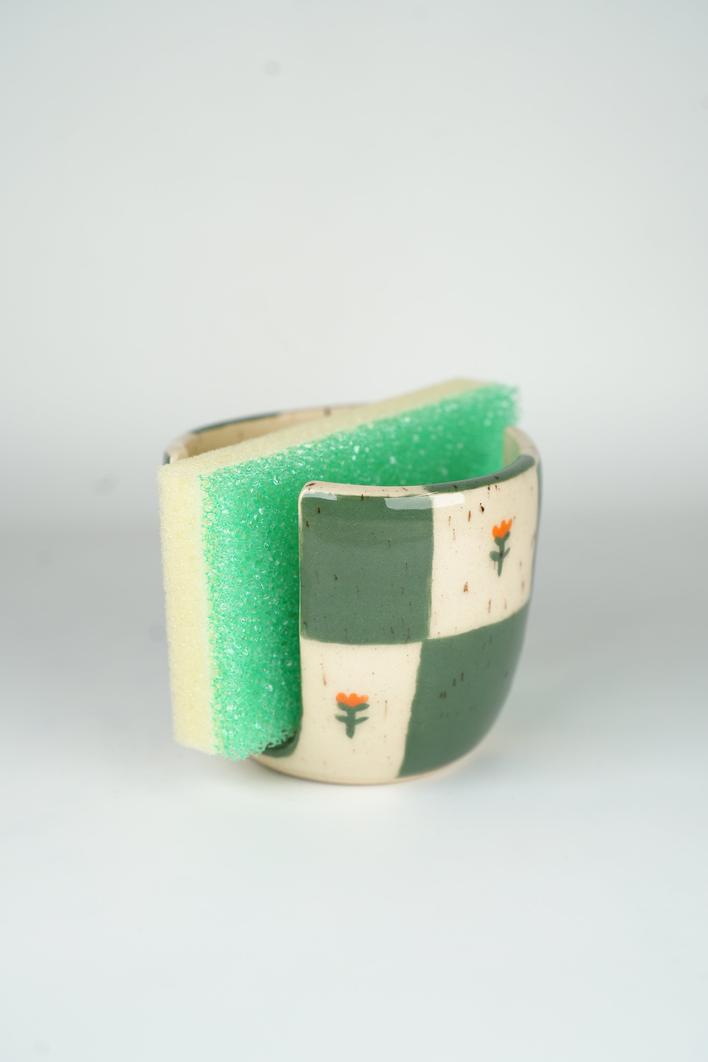 Jade Green Checkers Sponge Holder