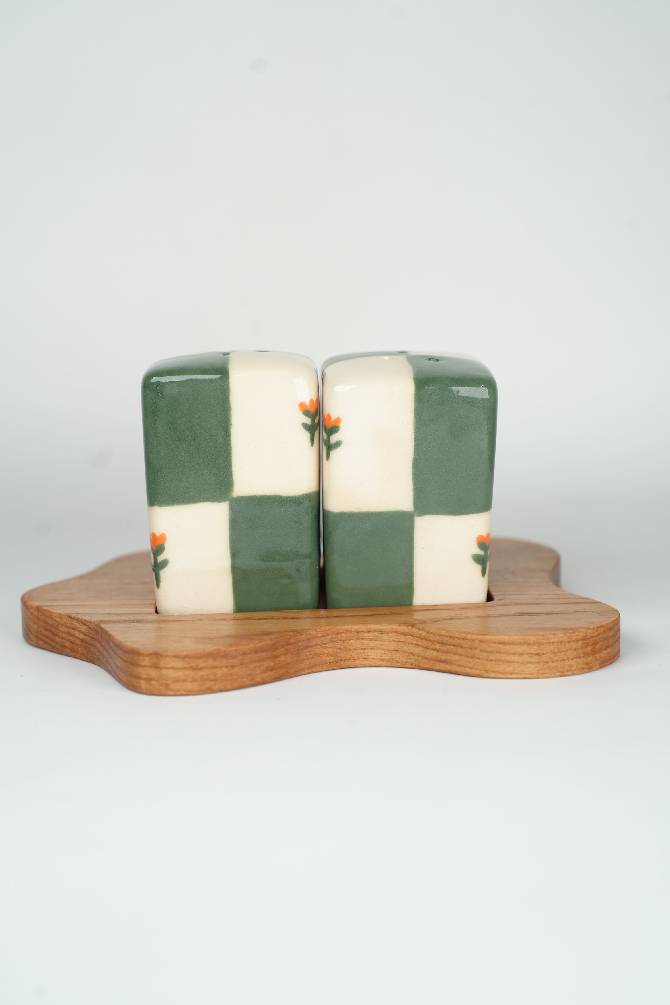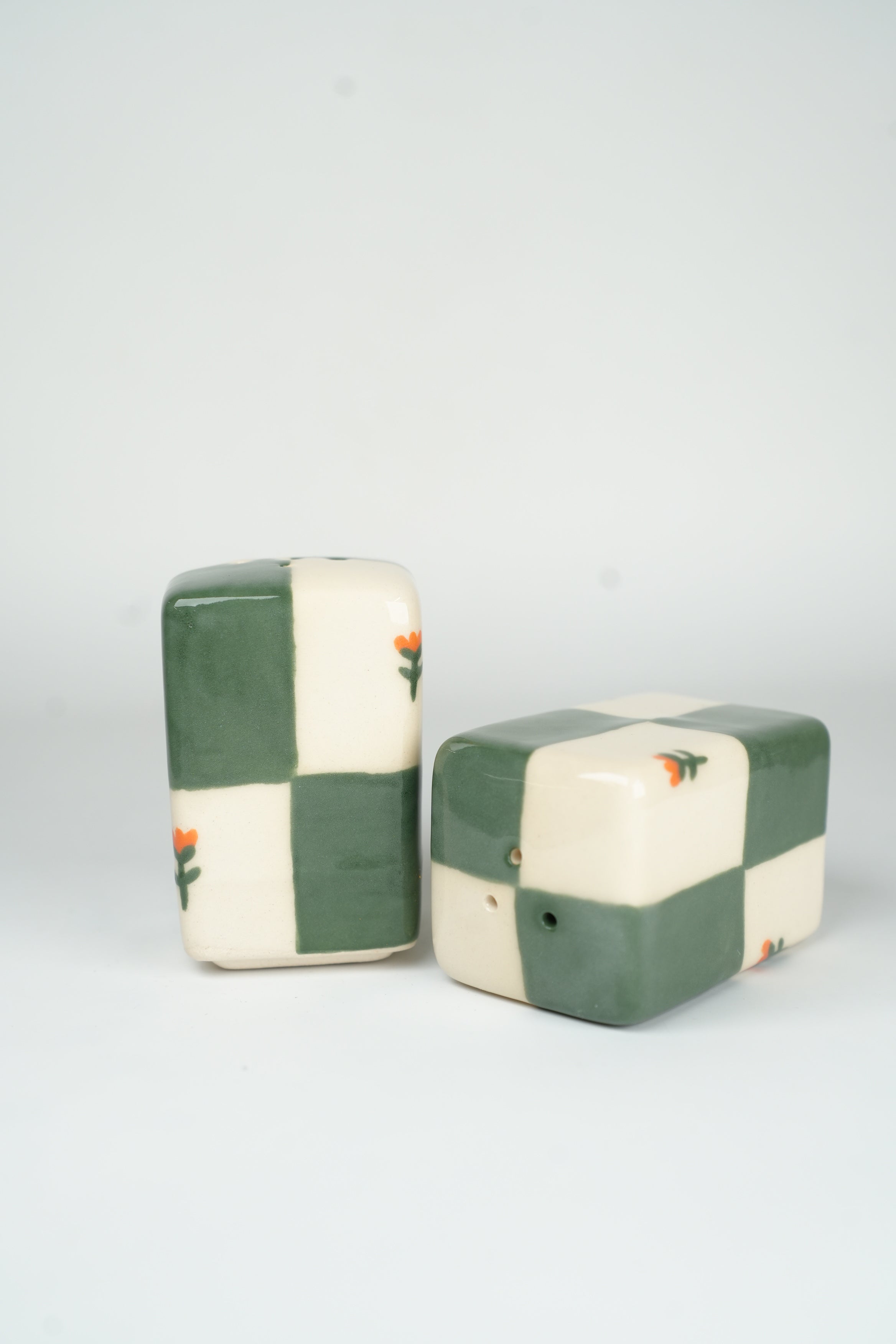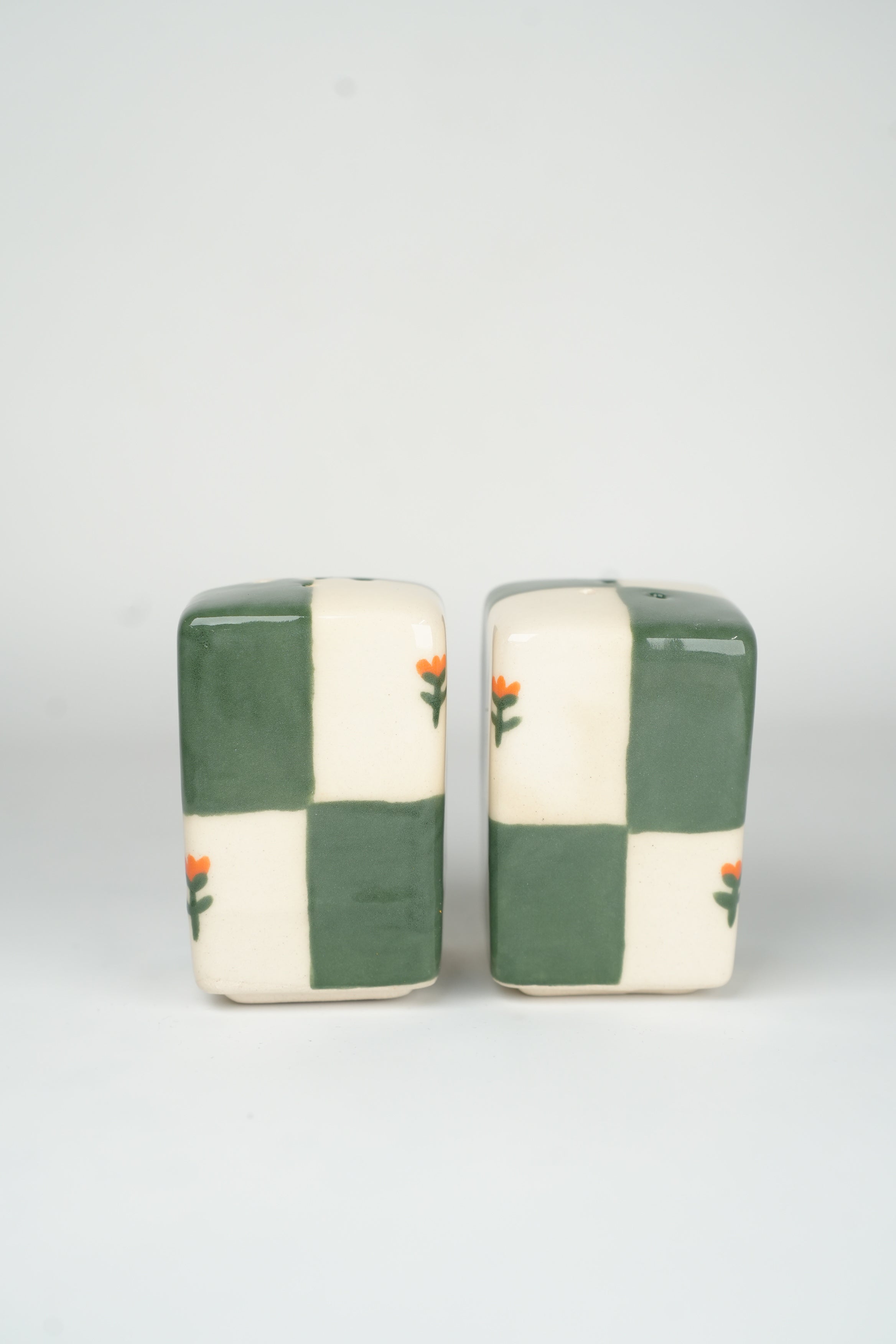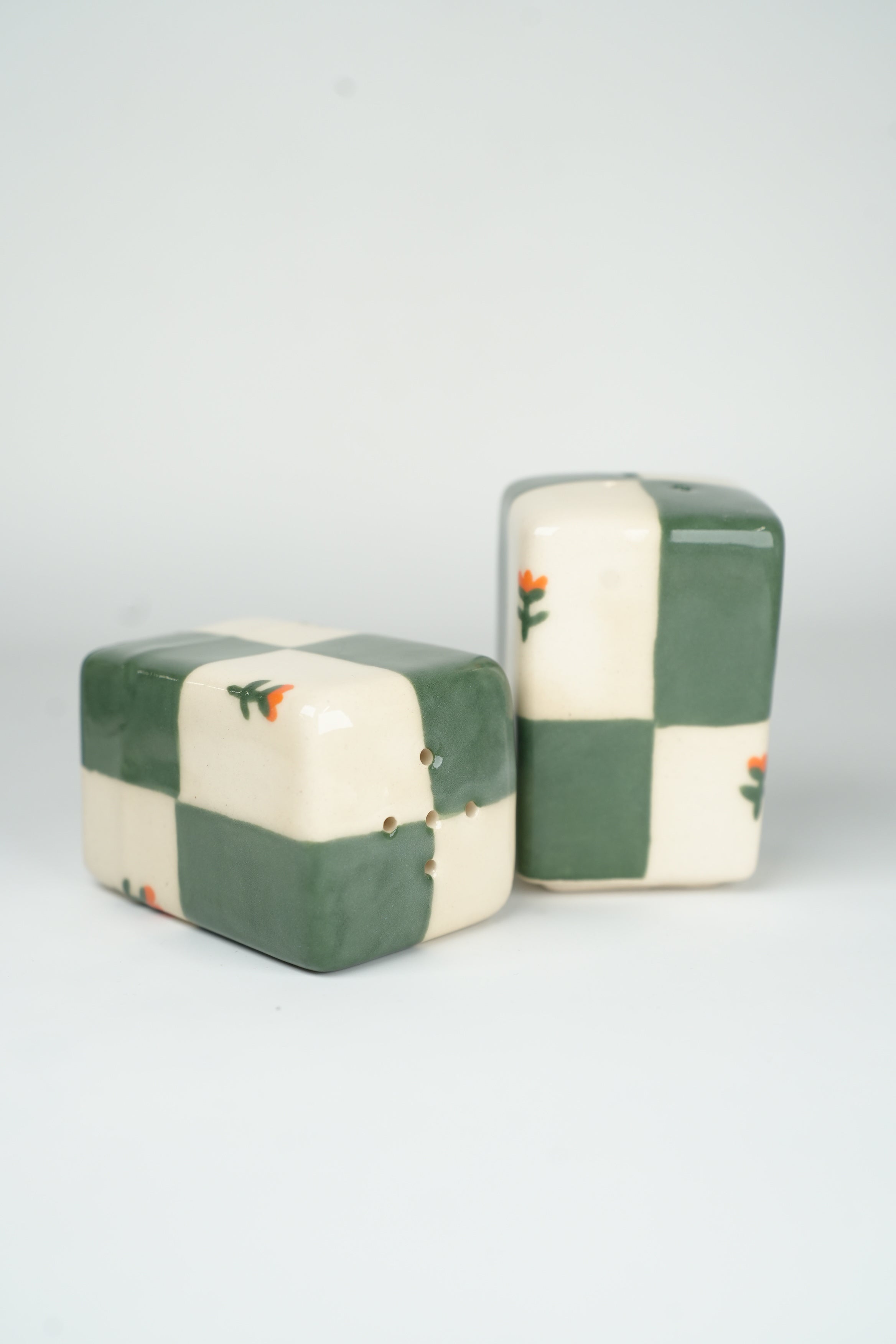 Jade Green/Orange Checkers Shaker Set - PRE-ORDER