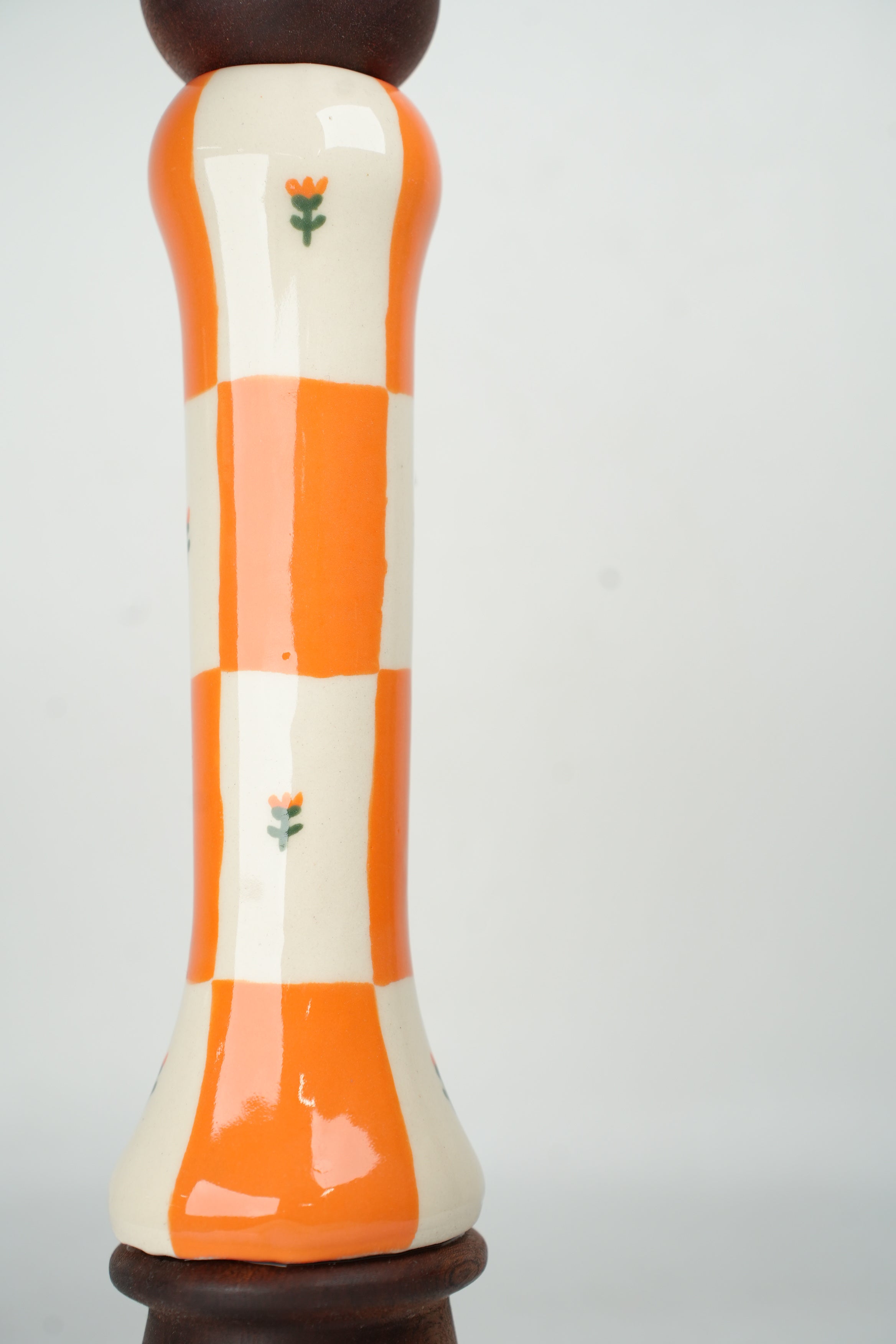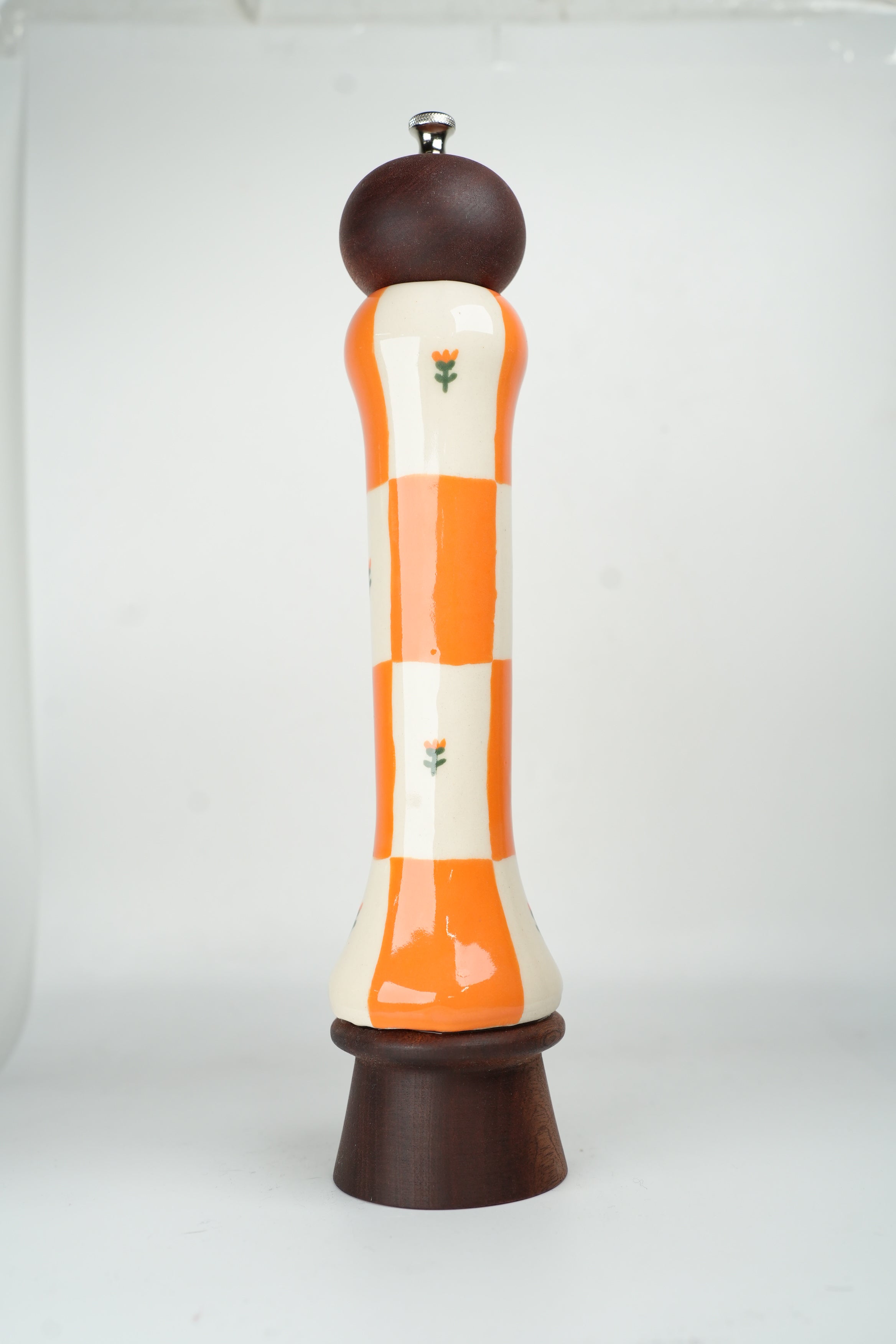Orange Checkers 12" Pepper Mill (Dark Wood)