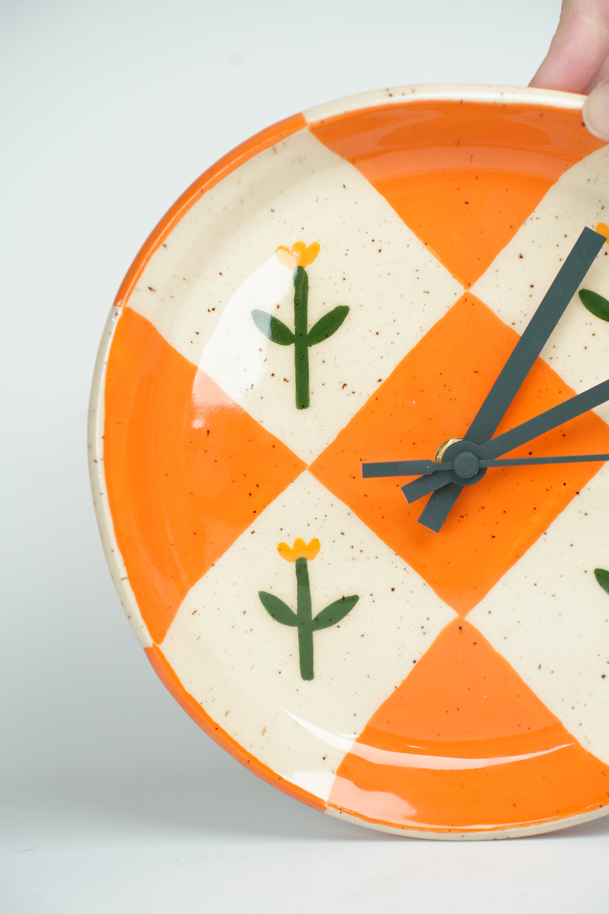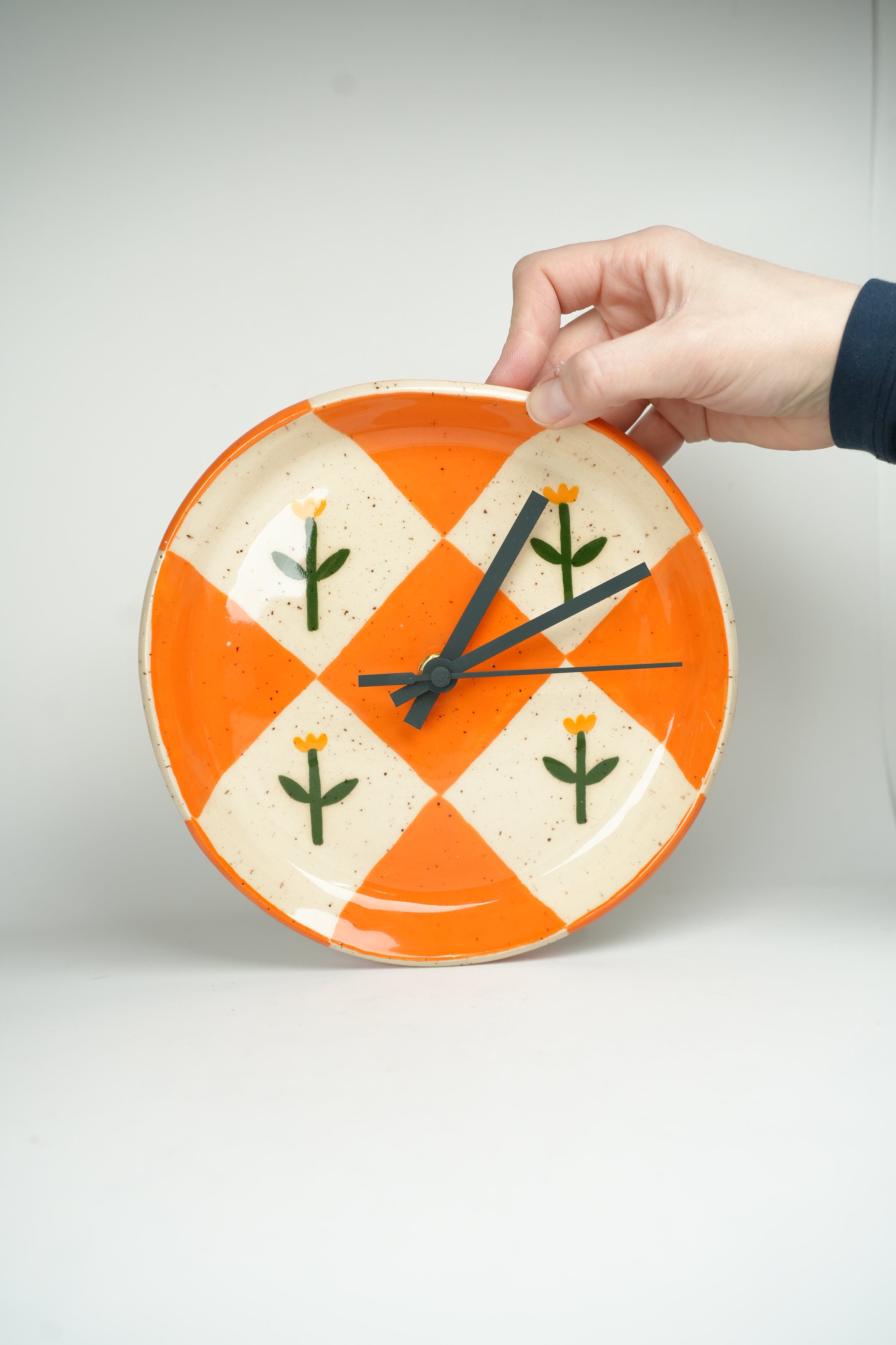 Tick tock, a ceramic clock! (The motors are silent, so there isn't actually any tick tocking.) A step on our mission to make the mundane beautiful. A true embodiment of our belief that art can be functional, these clocks are great for telling time and even better for looking beautiful on your wall. Painstakingly crafted one by one, each of these clocks takes days, sometimes weeks to complete. Made and painted by hand in our Toronto studio.