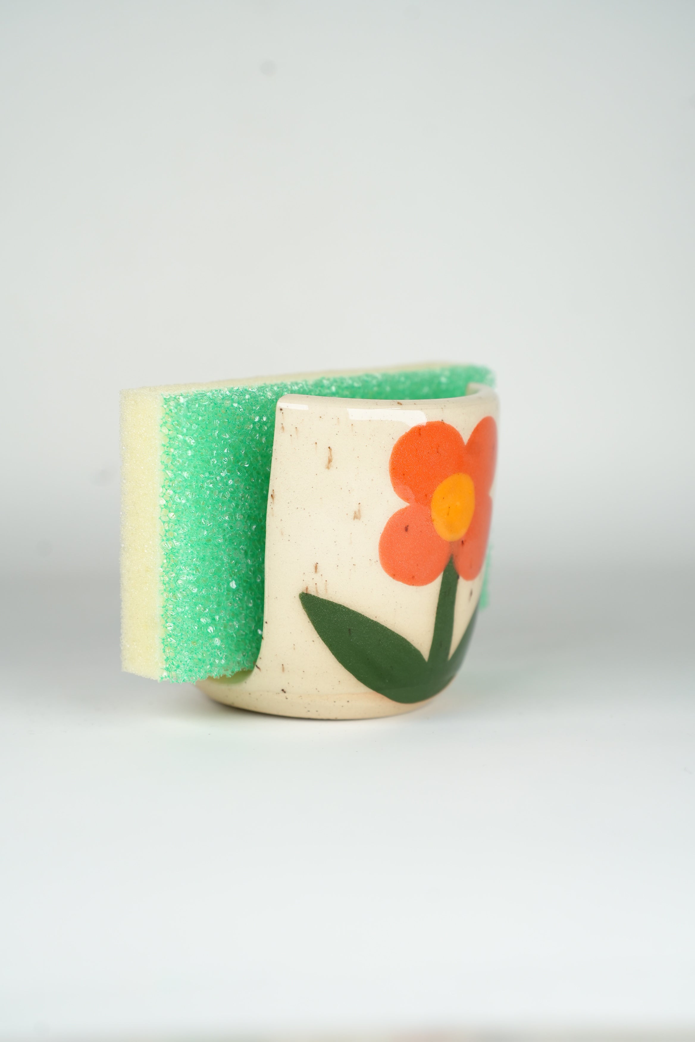 The perfect place to put your sponge. These little stoneware sponge holders are approximately 2" wide and 3" tall.