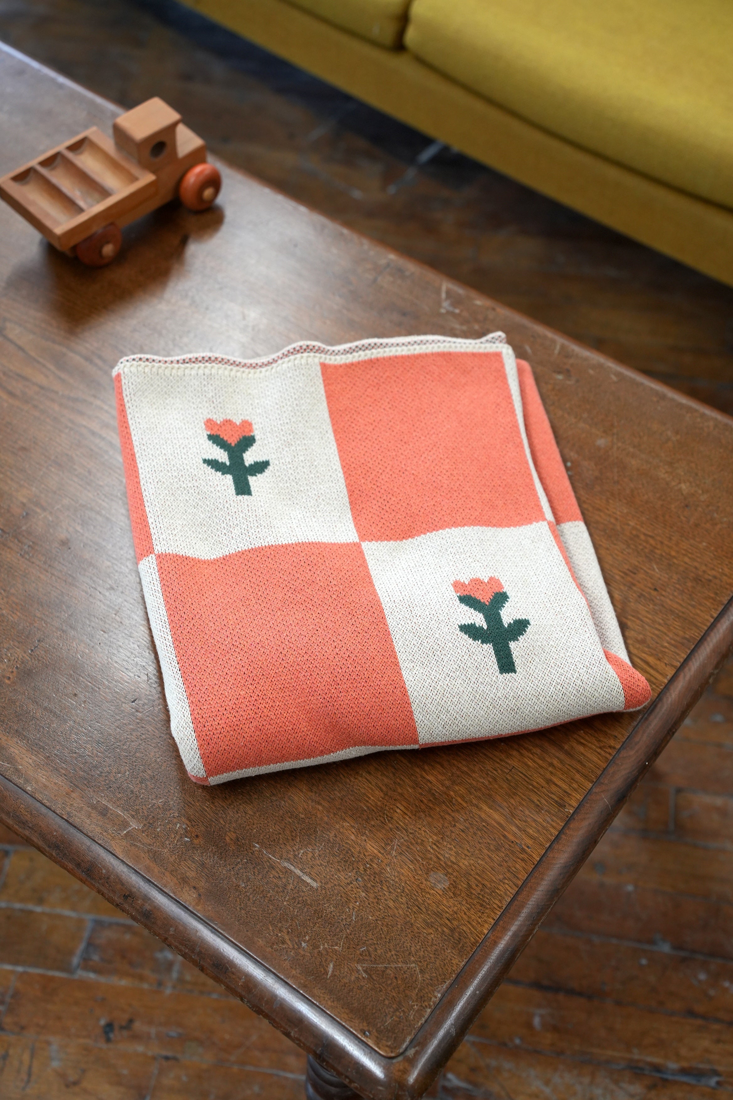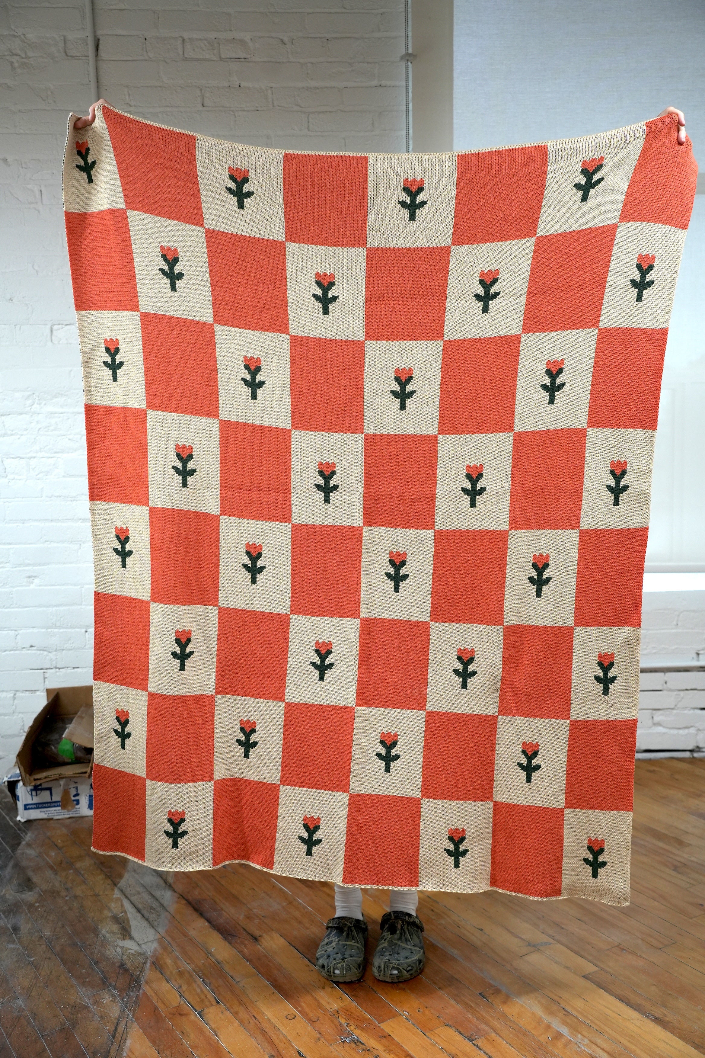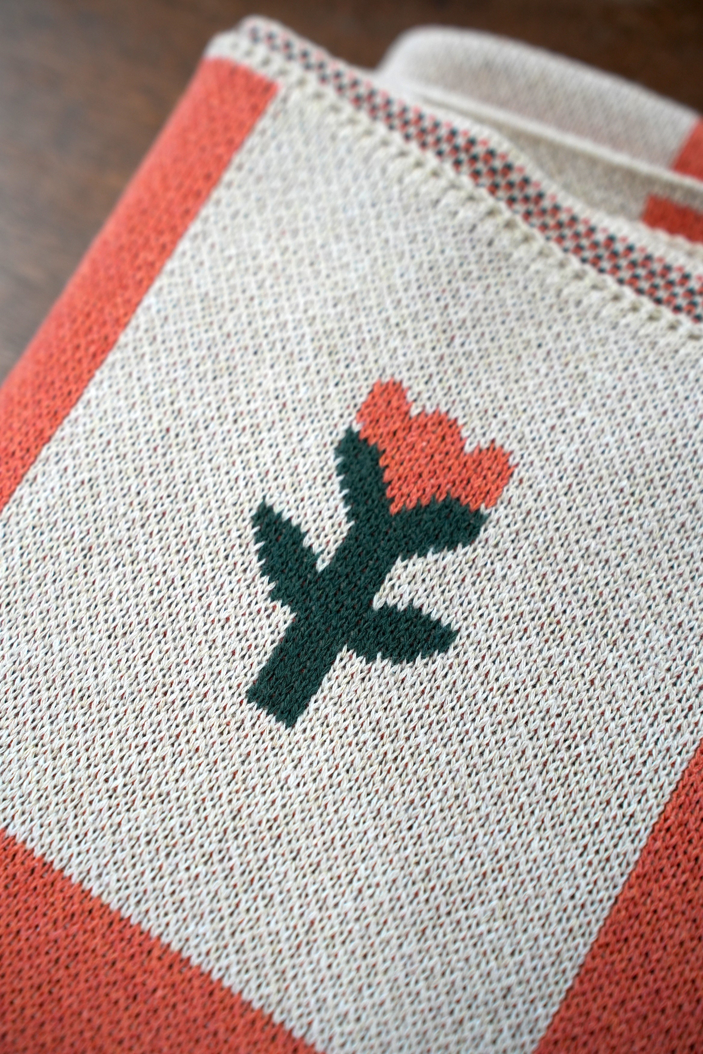 Just in time for fall, The TDF Flower blanket is made from 100% recycled cotton. These substantial, double-knit blankets are the perfect weight for cozying up on the couch, or outside on a cool evening. They're nice and big at 50" x 60", and have a slight amount of stretch.
