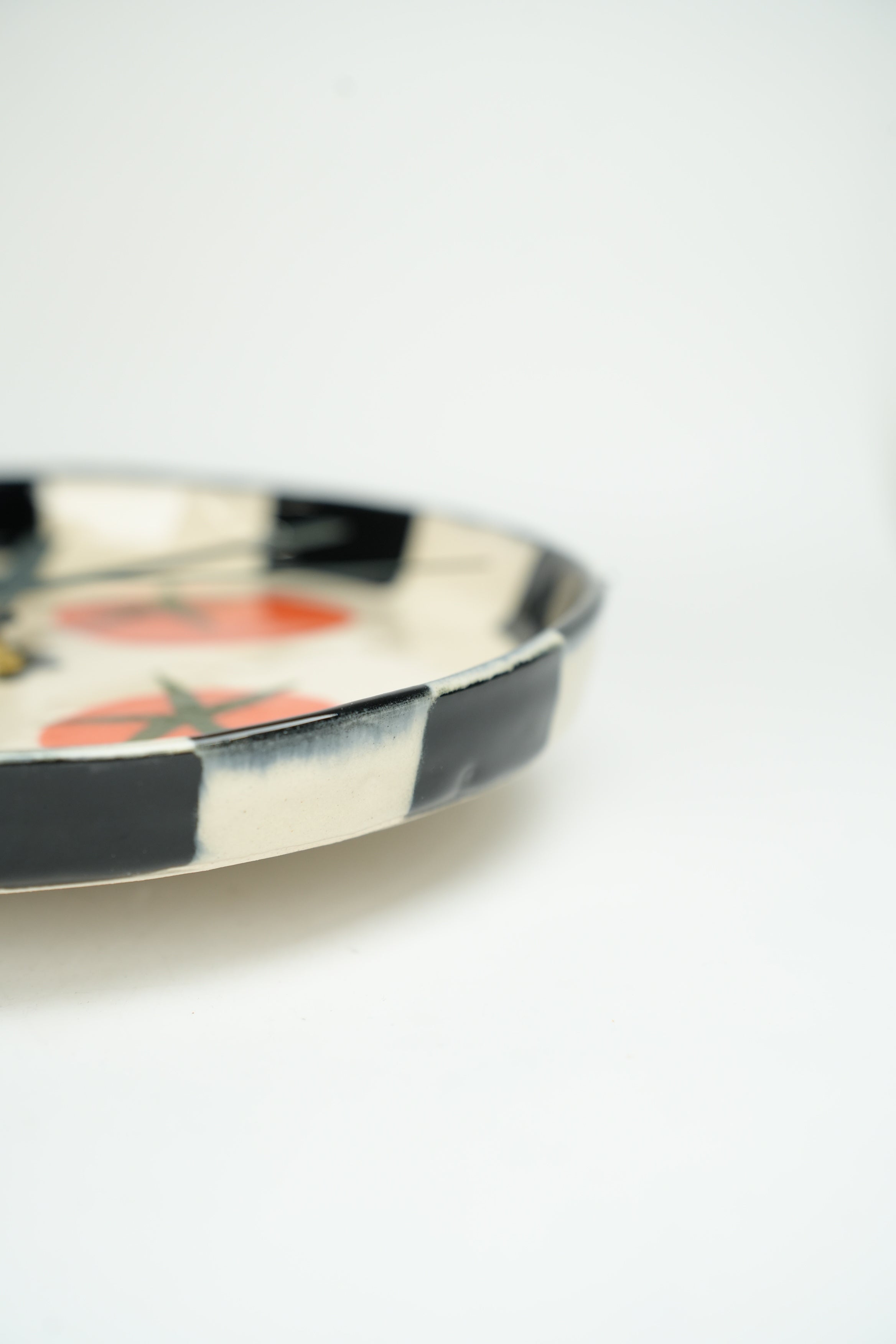 Tick tock, a ceramic clock! (The motors are silent, so there isn't actually any tick tocking.) A step on our mission to make the mundane beautiful. A true embodiment of our belief that art can be functional, these clocks are great for telling time and even better for looking beautiful on your wall. Painstakingly crafted one by one, each of these clocks takes days, sometimes weeks to complete. Made and painted by hand in our Toronto studio.